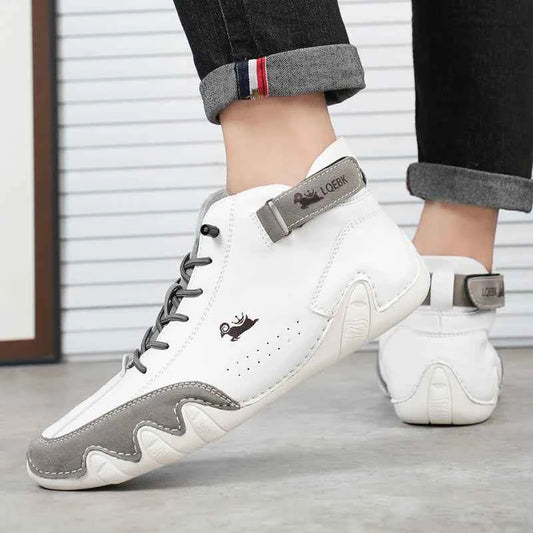 Men's High-Top Leather Sneakers - Slip-On Casual Shoes